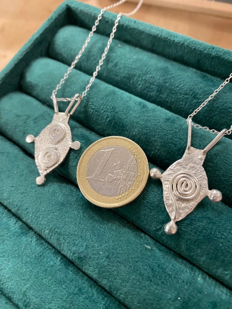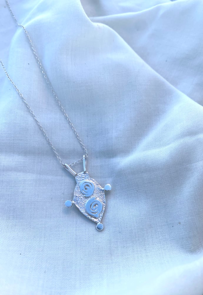 Handmade using precious 925 silver - signature al’s gems pendant shape showing two spirals over a reticulated surface revealing an organic texture - with belcher chain length 18’’